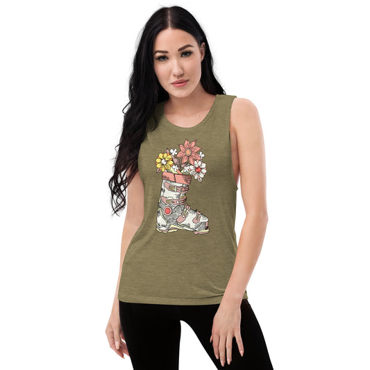 Boot and Blossom with Flowers Pastel Ladies’ Muscle Tank